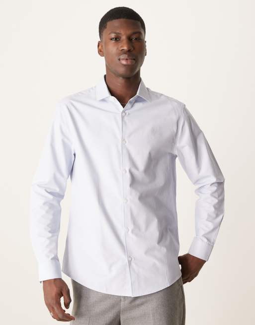 ASOS DESIGN – Niebieska elegancka teksturowana koszula o dopasowanym kroju