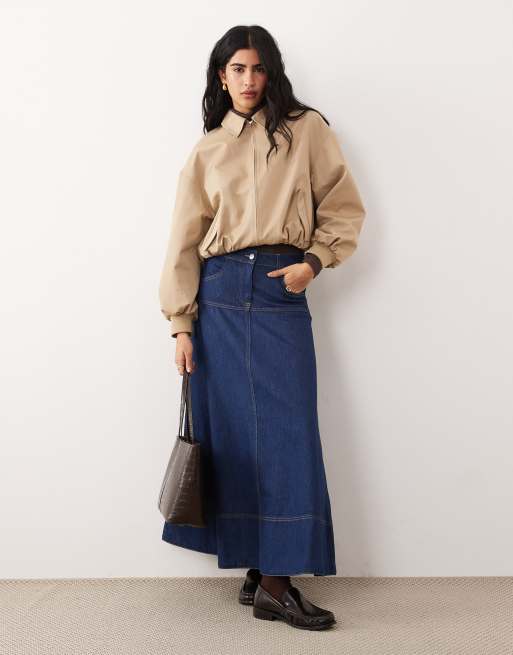 ASOS DESIGN – Niebieska jeansowa spódnica z koła z obniżoną talią