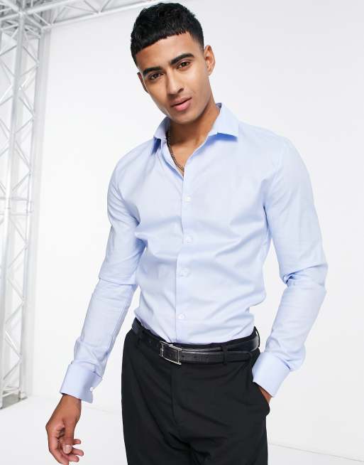 ASOS DESIGN – Niebieska obcisła koszula oxford z podwójnymi mankietami