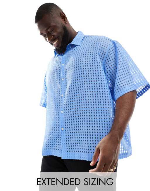 ASOS DESIGN – Niebieska prześwitująca koszula oversize o pudełkowym kroju z krótkimi rękawami w kratkę vichy