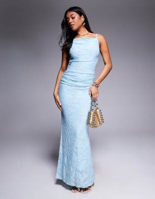 ASOS DESIGN – Niebieska sukienka maxi bez rękawów z odkrytymi plecami i szarfą