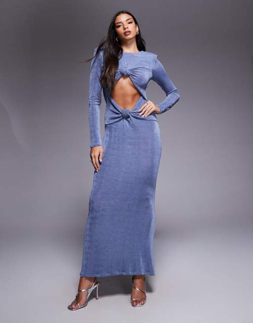ASOS DESIGN – Niebieska sukienka maxi z długimi rękawami, dwoma węzłami i wycięciem