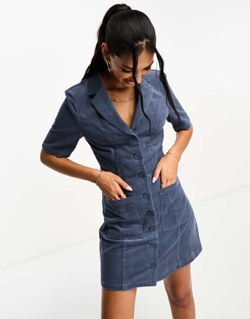 ASOS DESIGN – Niebieska zapinana na guziki sukienka sztruksowa mini