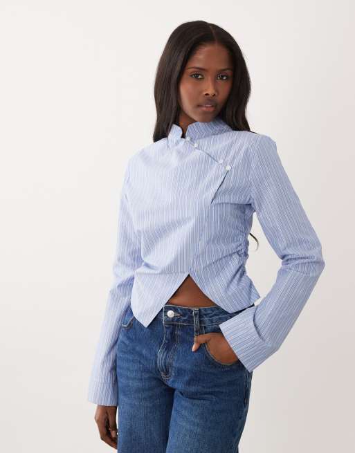 ASOS DESIGN – Niebieska zwężana w talii koszula o dopasowanym kroju ze stójką w paski