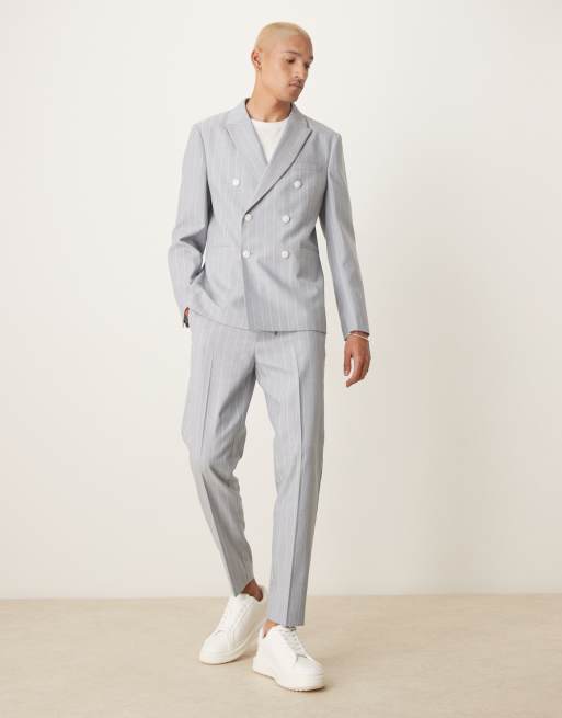 ASOS DESIGN – Niebieski dopasowany garnitur z domieszką lnu w prążki