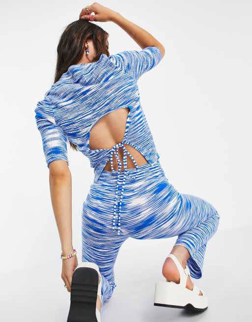 ASOS DESIGN – Niebieski dzianinowy top z odkrytymi plecami, kołnierzykiem i efektem space-dye – część zestawu
