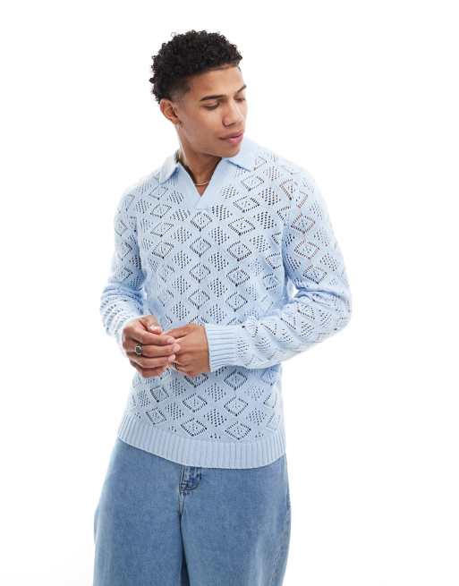 ASOS DESIGN – Niebieski fakturowany sweter dzianinowy z wycięciem w dekolcie