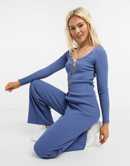 ASOS DESIGN – Niebieski kardigan i spodnie z szerokimi nogawkami (zestaw)