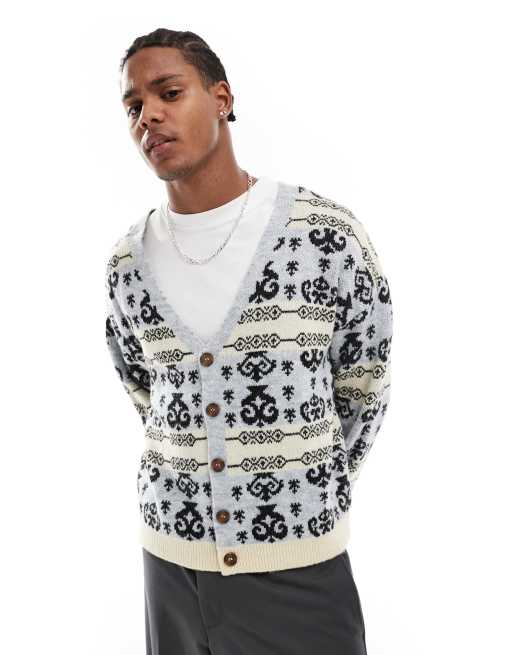 ASOS DESIGN – Niebieski luźny kardigan z puszystej dzianiny w skandynawski wzór