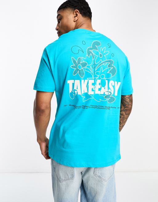 ASOS DESIGN – Niebieski luźny T-shirt z nadrukiem z motywem kwiatów na plecach
