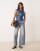 ASOS DESIGN – Niebieski podkoszulek z dekoltem w łódkę i grafiką z motywem lamparta