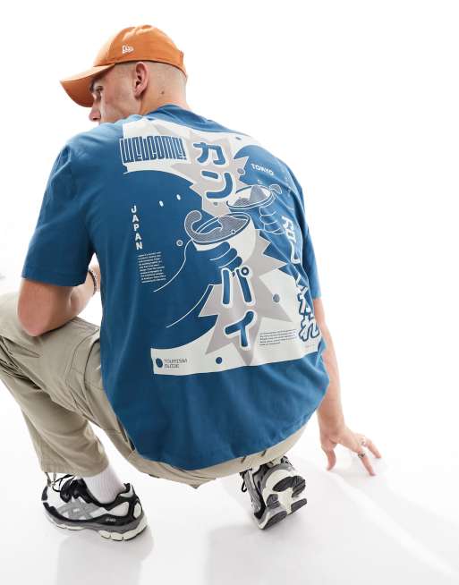 ASOS DESIGN – Niebieski T-shirt oversize z nadrukiem na plecach