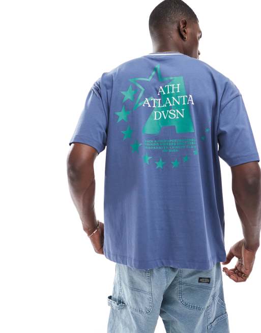 ASOS DESIGN – Niebieski T-shirt oversize z nadrukiem z przodu i na plecach