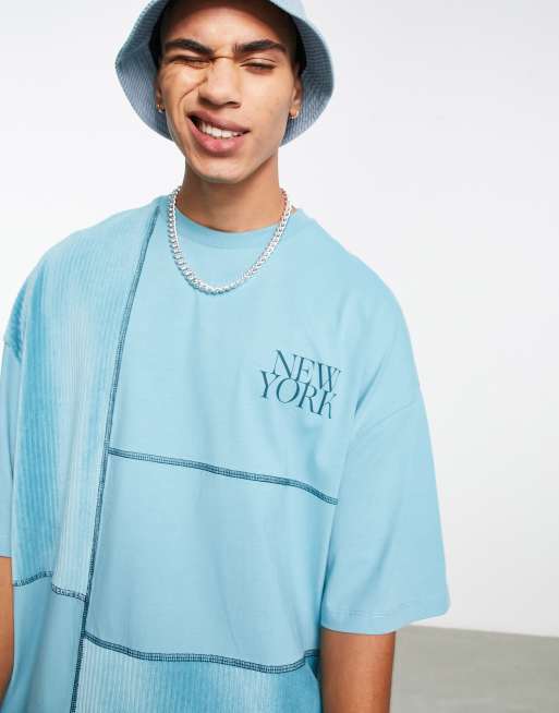 ASOS DESIGN – Niebieski T-shirt oversize z prążkowanego weluru z blokami kolorów