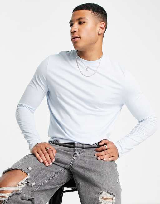 ASOS DESIGN – Niebieski T-shirt z długim rękawem i okrągłym dekoltem