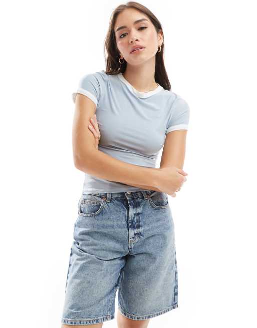 ASOS DESIGN – Niebieski top warstwowy z rękawkami i kontrastowym wykończeniem