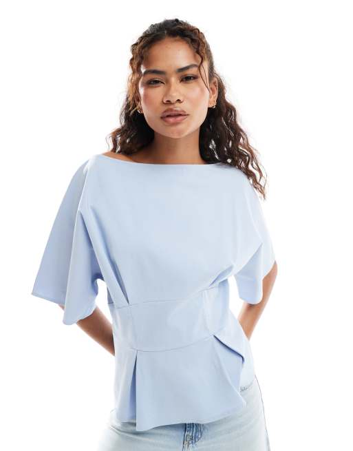 ASOS DESIGN – Niebieski top ze zwężaną talią z ozdobnymi szwami