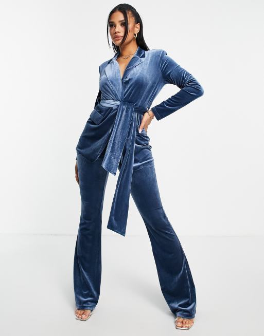 ASOS DESIGN – Niebieskie aksamitne dzwony garniturowe