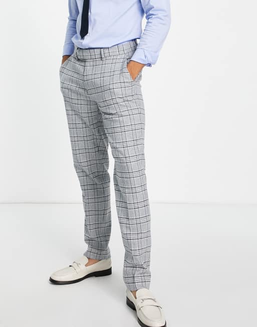 ASOS DESIGN – Niebieskie dopasowane spodnie garniturowe z domieszką wełny w kratę