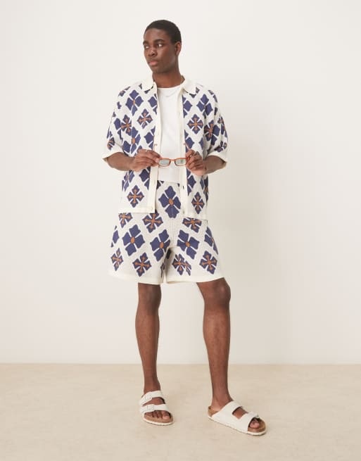 ASOS DESIGN – Niebieskie dzianinowe szorty oversize we wzór, część zestawu