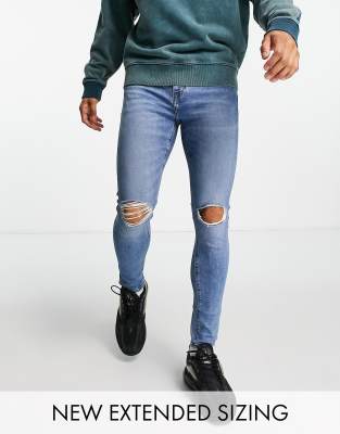 ASOS DESIGN – Niebieskie jeansy o bardzo obcisłym kroju z power stretchem i przetarciami na kolanach