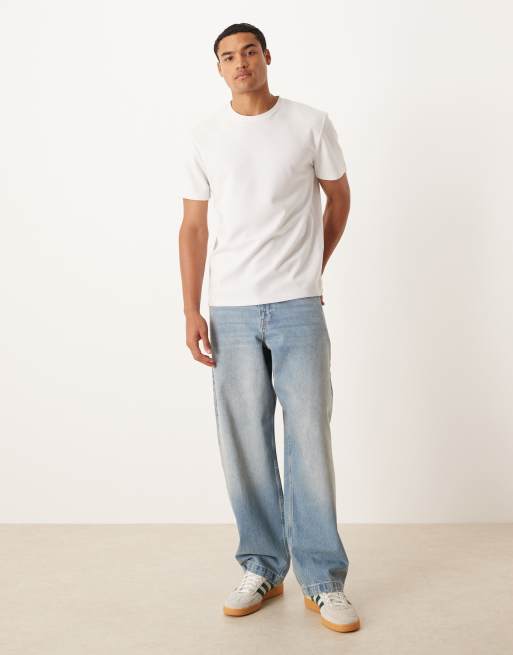 ASOS DESIGN – Niebieskie jeansy o luźnym prostym kroju z efektem sprania i zabrudzenia