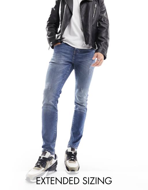 ASOS DESIGN – Niebieskie jeansy o obcisłym kroju z przetarciami