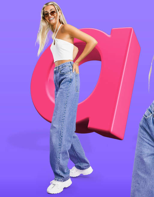 ASOS DESIGN – Niebieskie jeansy oversize w stylu skater z mieszanki bawełny ze średnim stanem – MBLUE