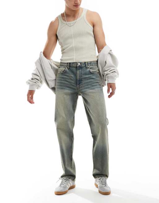 ASOS DESIGN – Niebieskie jeansy z prostymi nogawkami i efektem przebarwienia