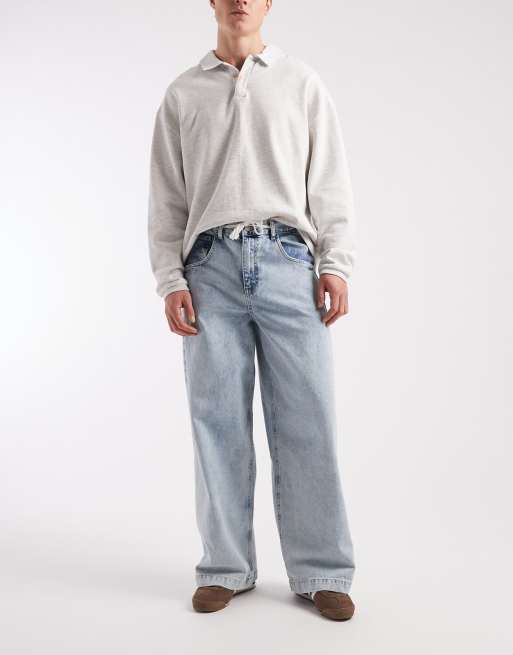 ASOS DESIGN – Niebieskie sprane jeansy o luźnym kroju