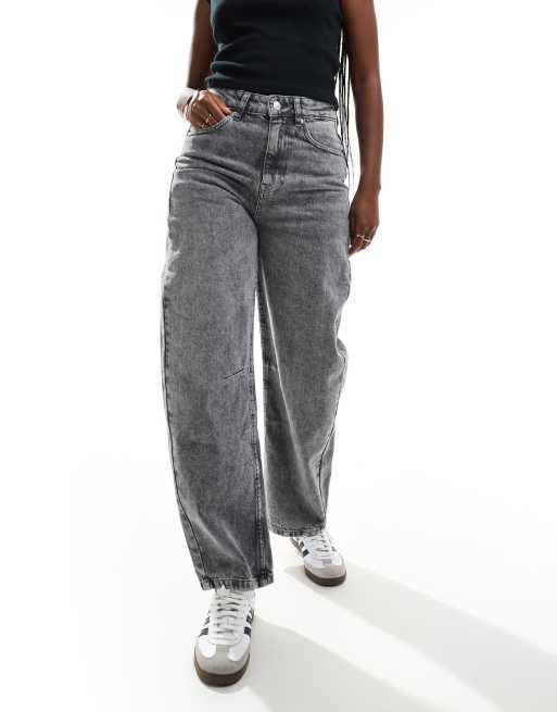 ASOS DESIGN – Niebieskie sprane jeansy z baryłkowymi nogawkami i zebraną talią
