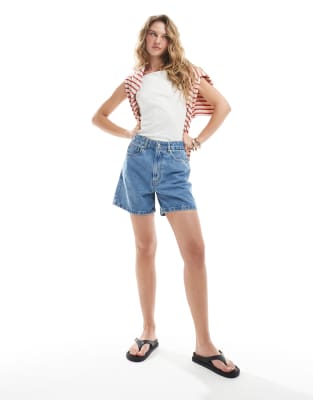 ASOS DESIGN – Niebieskie szorty jeansowe dad fit z regulacją w pasie