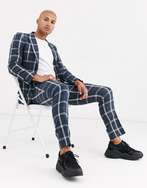ASOS DESIGN – Niebiesko-biały garnitur o obcisłym kroju w kratę