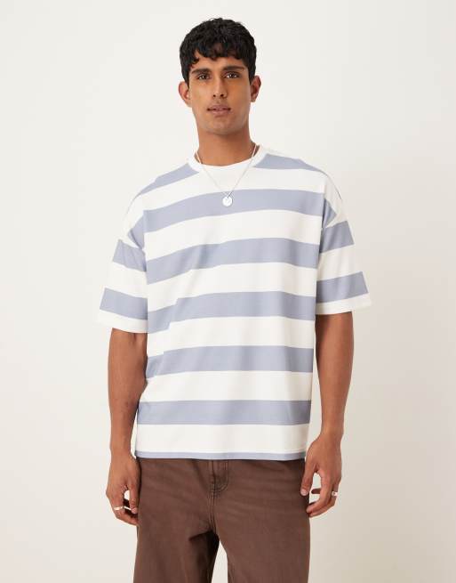 ASOS DESIGN – Niebiesko-biały gruby T-shirt oversize w szerokie paski