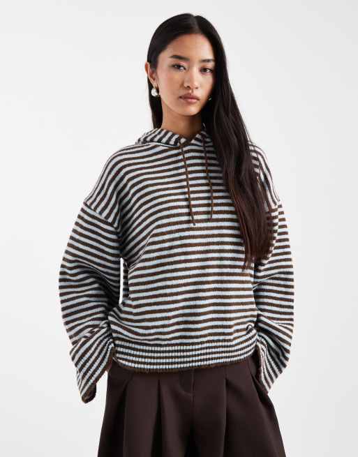 ASOS DESIGN – Niebiesko-brązowa bluza z kapturem z puszystej dzianiny w paski, część zestawu