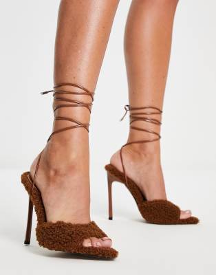 ASOS DESIGN – Notify – Ciemnobrązowe sandały na obcasie, z kożuszka, ze spiczastym noskiem