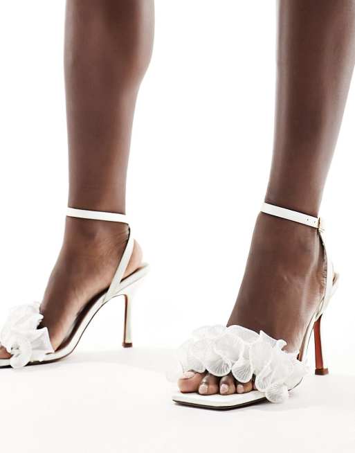 ASOS DESIGN – Now – Sandały na wysokim obcasie z falbanką w kolorze kości słoniowej