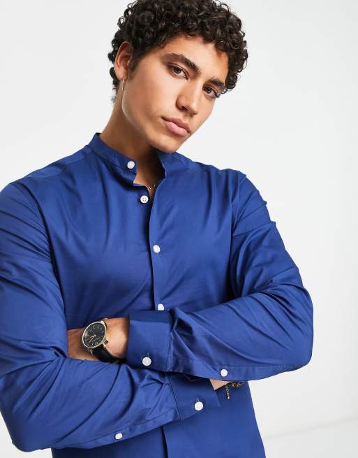 ASOS DESIGN – Obcisła koszula ze stójką w kolorze królewskiego błękitu