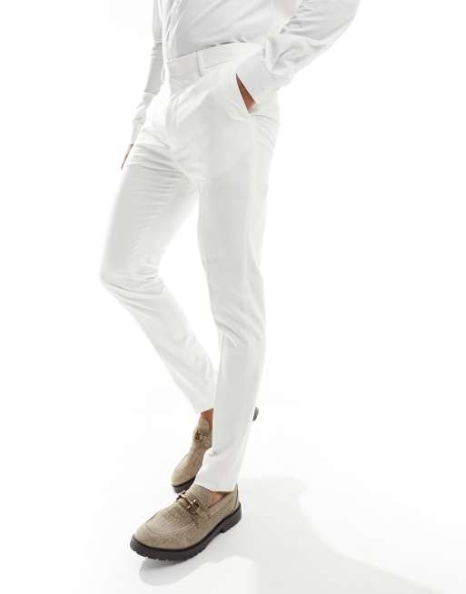 ASOS DESIGN – Obcisłe spodnie garniturowe w kolorze ecru