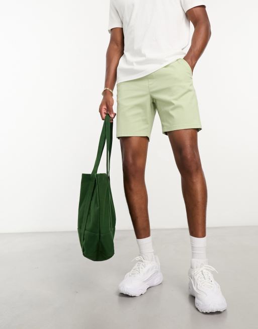 ASOS DESIGN – Obcisłe średniej długości szorty chinosy w jasnym kolorze khaki