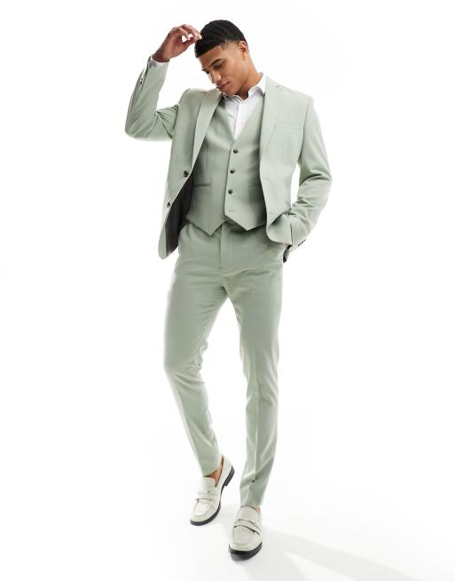ASOS DESIGN – Obcisły szałwiowozielony garnitur