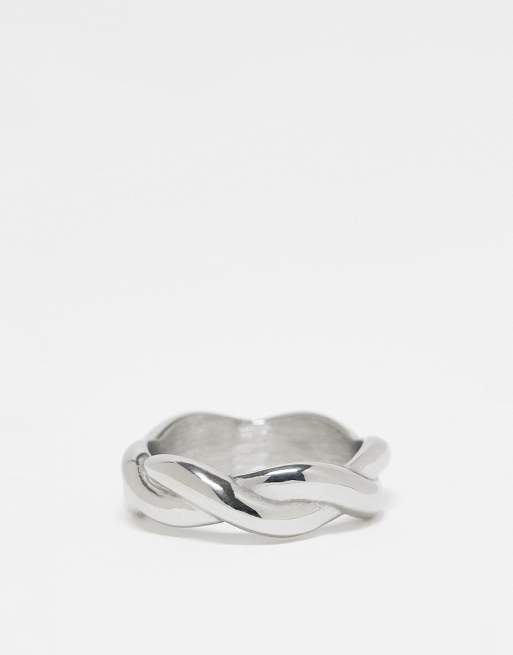 ASOS DESIGN – Obrączka ze stali nierdzewnej w kolorze srebrnym z efektem plecionki