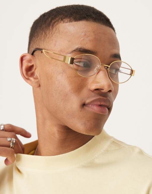 ASOS DESIGN – Okrągłe okulary z przezroczystymi szkłami i metalowymi złotymi oprawkami