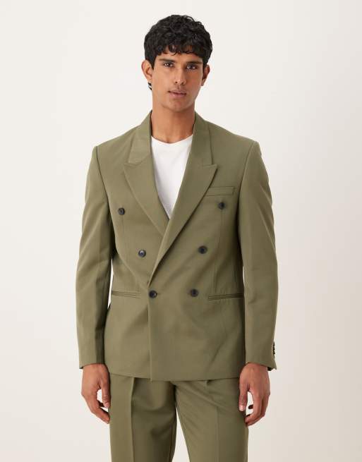 ASOS DESIGN – Oliwkowa dwurzędowa marynarka garniturowa o regularnym kroju z diagonalu