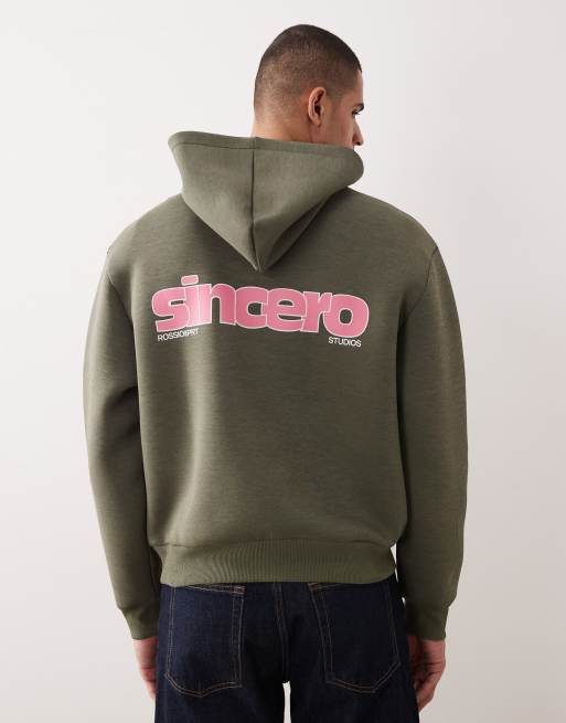 ASOS DESIGN – Oliwkowa, luźna bluza z kapturem i napisem, z materiału typu scuba
