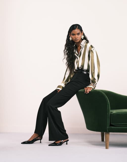 ASOS DESIGN – Oliwkowa satynowa koszula oversize w paski