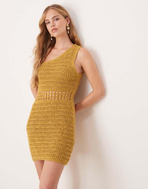 ASOS DESIGN – Oliwkowa sukienka mini na jedno ramię z szydełkowej dzianiny
