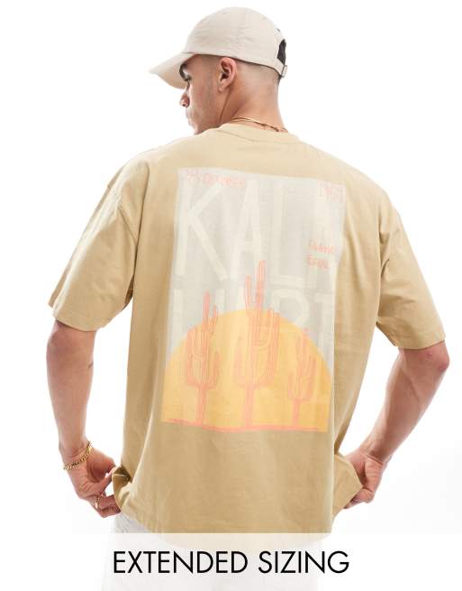 ASOS DESIGN – Oliwkowoszary T-shirt oversize z nadrukiem na plecach