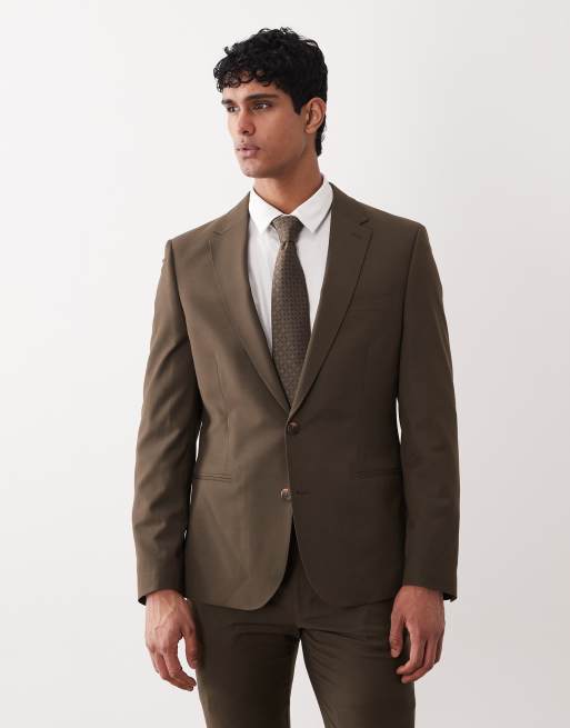 ASOS DESIGN – Oliwkowozielona marynarka garniturowa o obcisłym kroju, z wełną, którą można prać