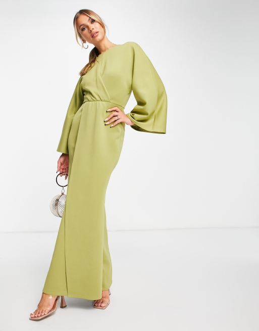 ASOS DESIGN – Oliwkowozielona sukienka maxi ze skręconym przodem i rozszerzanymi rękawami